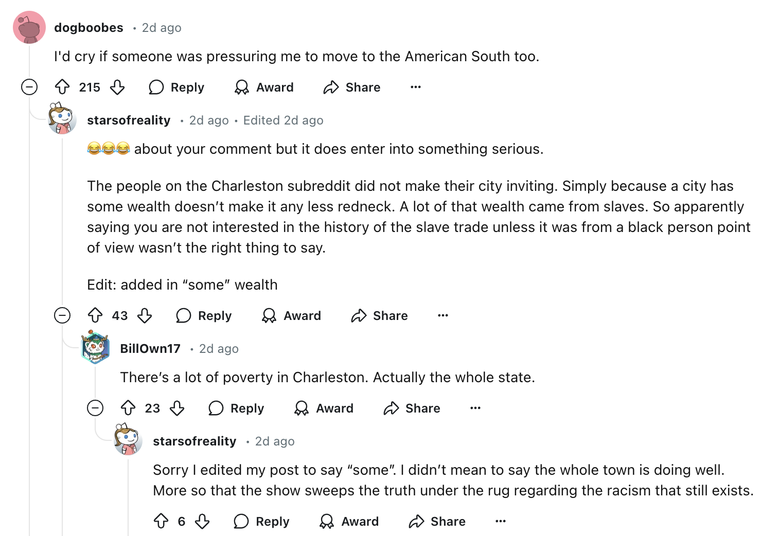 While the couple managed a long-distance relationship between New York and Charleston, it’s understandable that Paige, a New York native, might have reservations about relocating to Charleston, a city with a complex history being North America’s largest Transatlantic Slave Trade port of entry.